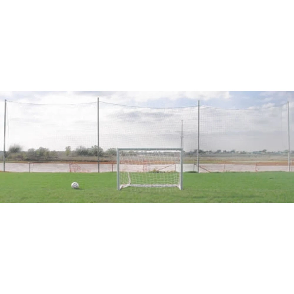Never chase down misdirected balls again. This backstop system measures 21’ high by 65’ wide and will catch just about anything that you throw or hit its way. Constructed with (4ea.) 3- 1/2’ galvanized steel poles for superb portability and durability. For ease of assembly the unit includes a 3mm 1.75’ mesh EHT black net (275lb breaking strength) with easy on and off pulley system and (4ea) aluminum ground sleeves. This backstop weighs 360 lbs so be sure to bring a couple of friends along for set and tear down.