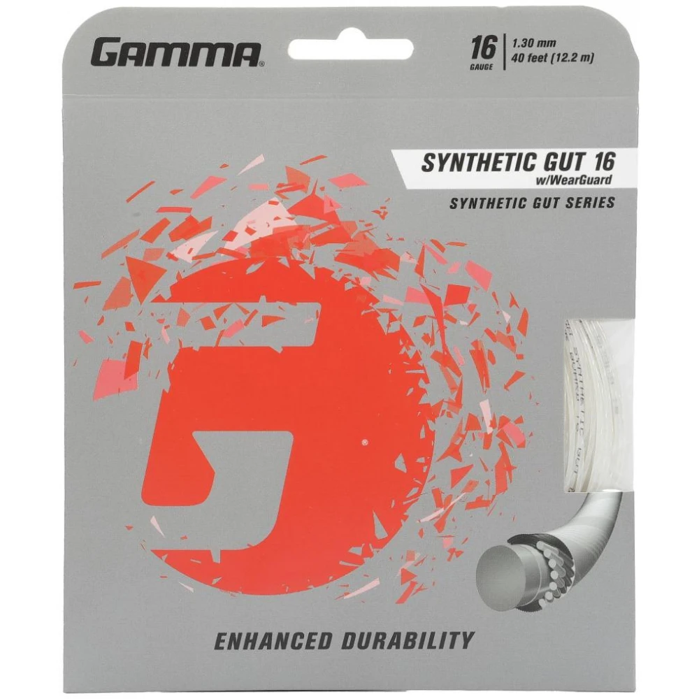 Gamma Synthetic Gut with Wearguard 16g is an all-around performance string that offers a balance of playability and extra durability for all playing levels and playing styles.