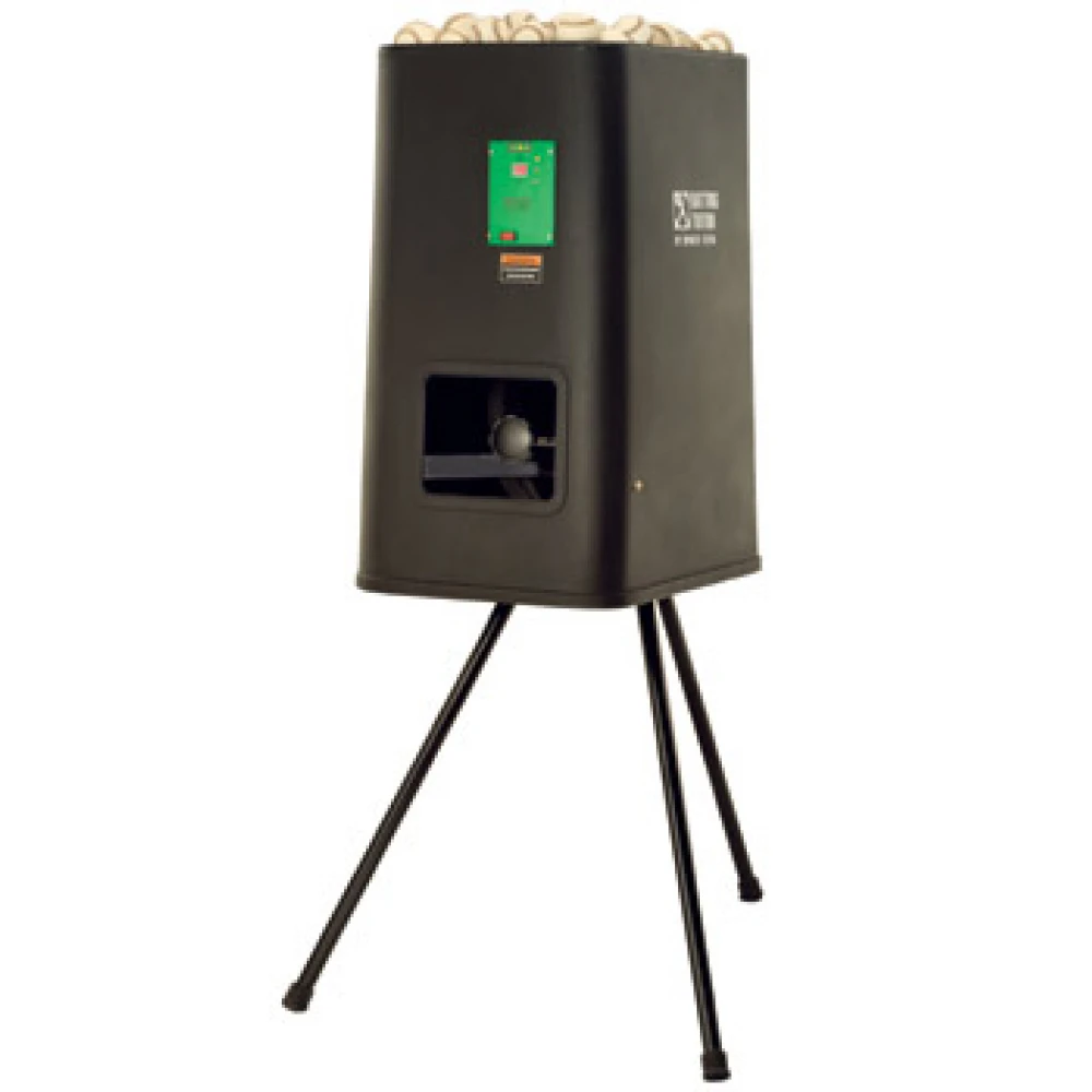 The pitching mechanism is protected by a durable, all-weather, high-impact plastic housing. An optional vinyl cover is available to further protect the machine and balls.