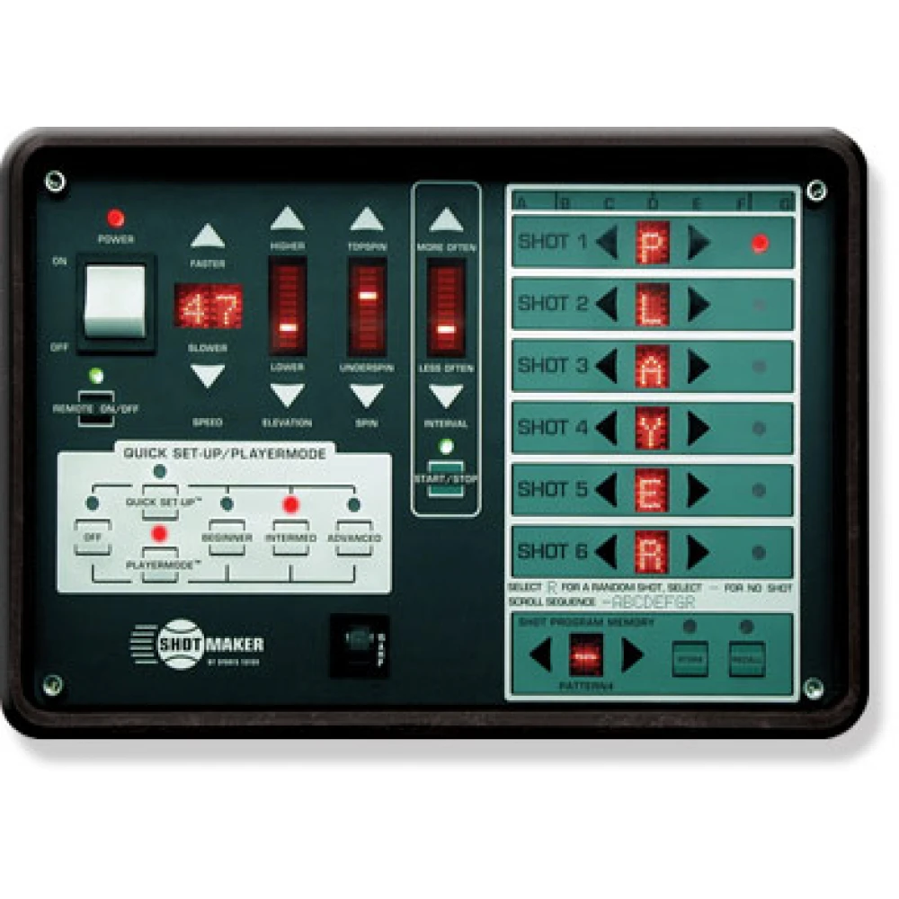 Quick Set-up offers one-touch shot selection based on the player’s ability. Push the button matching your skill level, and Shot Maker will send a pre-programmed shot to the middle position at an appropriate interval. If you do not want the pre-programmed shots, use the Quick Set-Up buttons to adjust the shot positions.