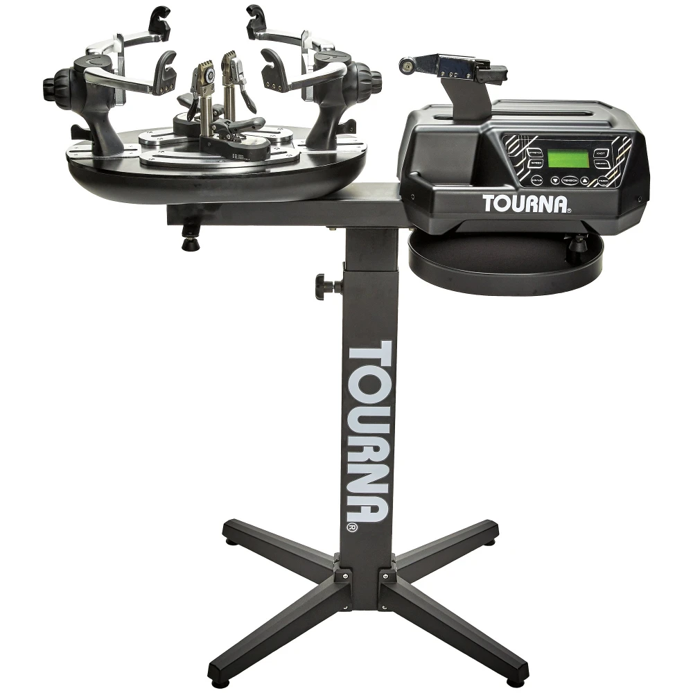The Tourna 700-ES stringing machine is a precision machine featuring patented down press clamps, gravity assist release, a diablo nosecone, linear gripper, and advanced microprocessor-controlled tension head. Everything about this machine is built to make stringing as easy and comfortable as possible. Layed back towers maximize the working space underneath the strings. The base is removable, and weighs 88lbs, so you can string with it as a table top as well.