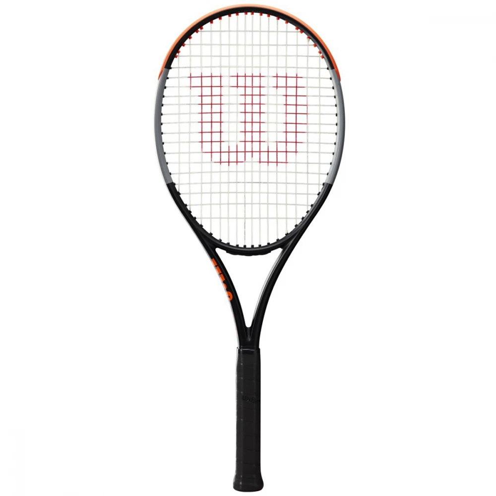 The Wilson Burn 100 V4 Tennis Racquet is a baseliner’s dream racquet for precision and power. with its 11.2 oz. weight and more typical but open 16×19 string pattern, this racquet provides some serious punch and allows for plenty of spin. The new matte black and silver design with the lightweight orange bumper guard provide some flashy looks as well. Made with Carbon Fiber Graphite, the Burn 100 will feel smooth and powerful with every groundstroke and net shot.